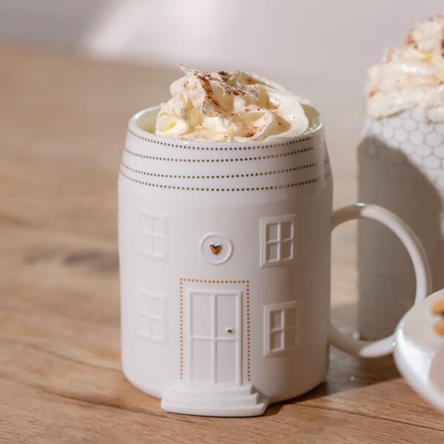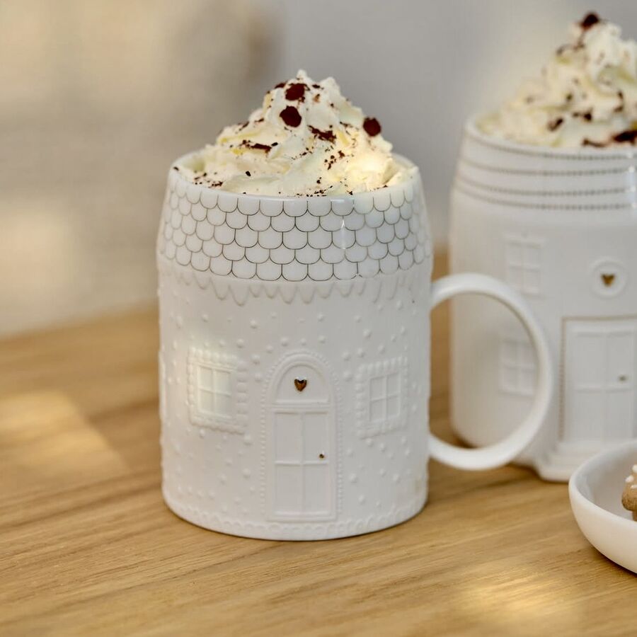 Hrníčky na nezapomenutelné momenty, pod oblohou posetou hvězdami, plný čaje nebo mléčné pěny s kávou, čokoládou s náloží šlehačky:-) Nebo třeba na rána, která jsou sladší než med. Krásný pro celou rodinu a možná i kouzelný v tom čase předvánočním. Hrníček Domeček s perníčky je inspirovaný tradičními perníky a elegantními zlatými akcenty. Hrníčk Domeček se srdíčkem je prostě domov a zlatý detail srdíčka nad dveřmi mluví za vše.