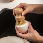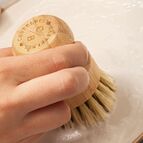 Mýdlo na nádobí je možné zakoupit v sadě s bambusovým kartáčem, který svými pevnými přírodními sisálovými štětinami a ergonomickou rukojetí určitě zpříjemní mytí nádobí:-)