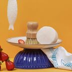 Luxusní jemné mýdlo portugalské značky Castelbel z kolekce Sardine nyní i na mytí nádobí. Stačí jej otřít houbičkou nebo kartáčem dokud se nevytvoří pěna a voilà - můžete se pustit do mytí nádobí! Talíře, misky, hrnce - vše zářivě čisté a parfémované osvěžující vůní mořské soli a citrónu. A přidání extraktu z citrónového tymiánu navíc zajistí, že i vaše ruce zůstanou hebké a svěží! Mýdle má nyní vtipný tvar půlky citrónu.