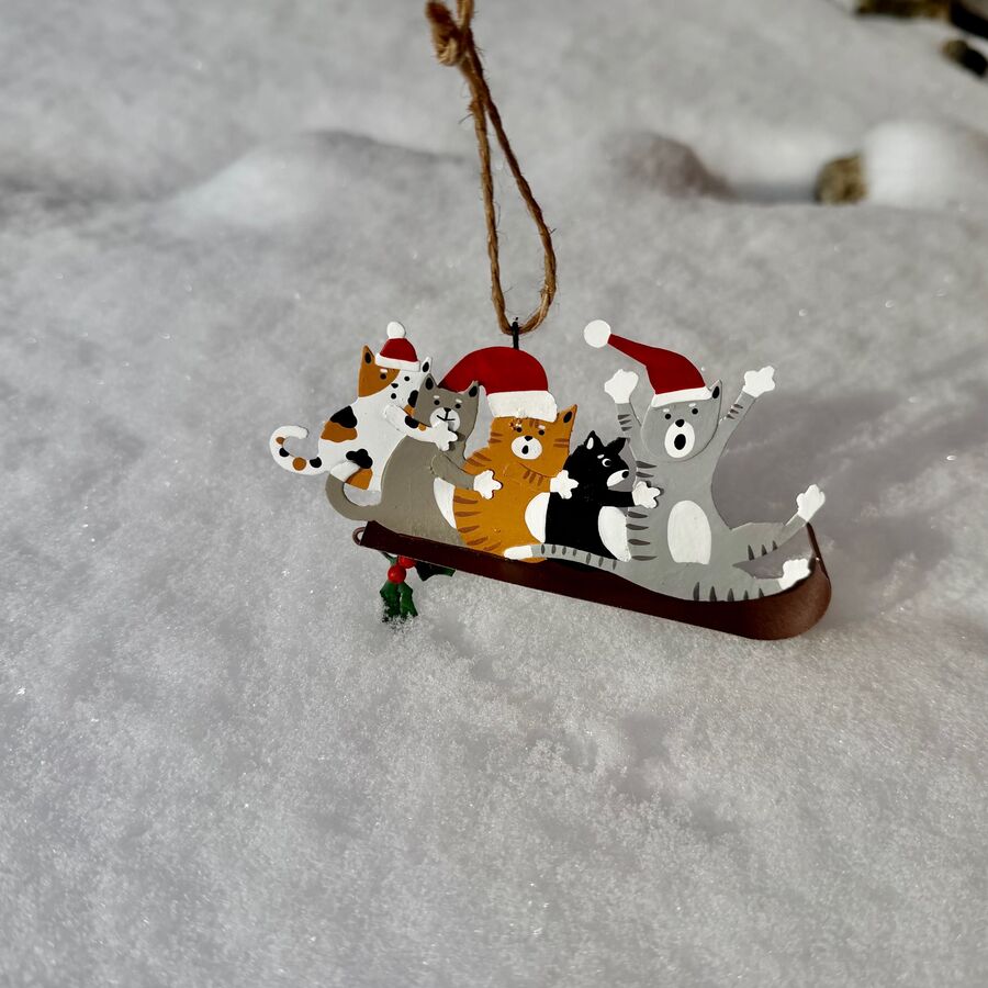 Ručně vyráběné závěsné dekorace z plechu a přírodních materiálů s motivem koček vnesou do každého domova trochu nostalgie, trochu hravosti a hodně originality. Můžete zavěsit na větvičku, do okna, do spíže nebo na vánoční stromeček. Každý kousek je originál, za kterým stojí malá rodinná firma z Anglie. A anglický šarm dekoracím rozhodně nechybí! Tato malinká umělecká díla si zaslouží vaši pozornost. Skvělý tip na doladění dárku!
