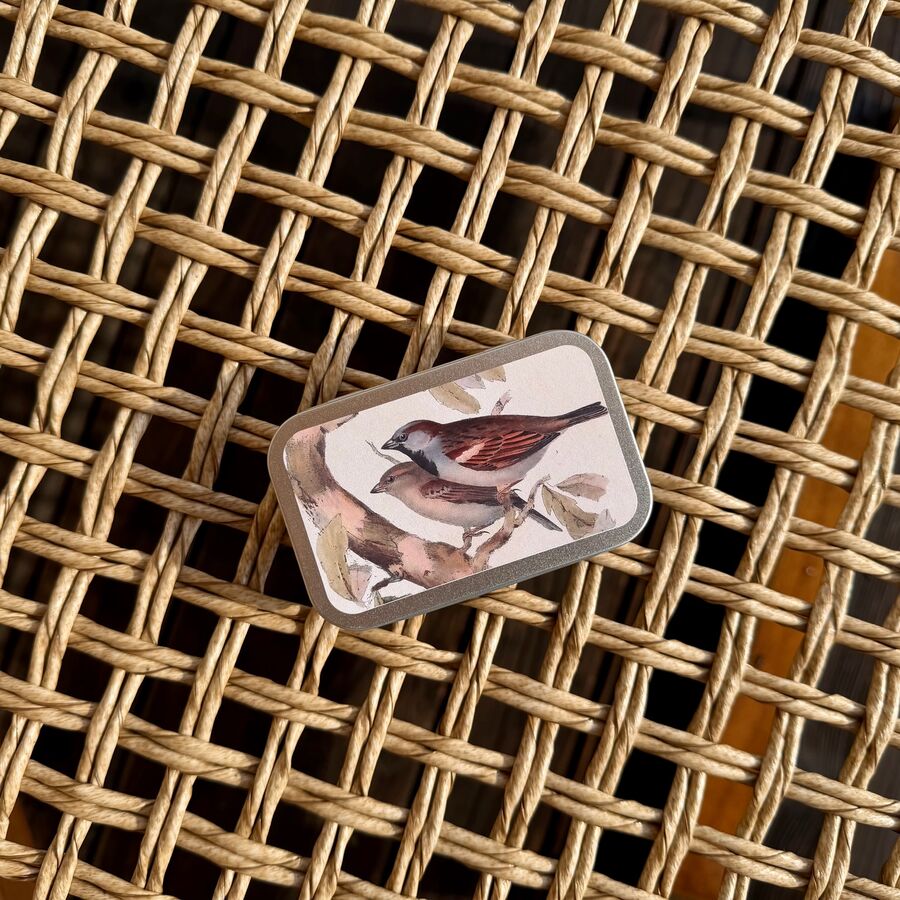 Pastilky Jablko, motiv ptáků v plechové krabičce, Sköna Ting