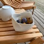 Autorský porcelán brněnské autorky Radky Linhartové, naprosto nezaměnitelný. Osobitý styl autorky, čistota provedení, dokonalé linie, jedinečné estetično vám z jednoduché mlékovky udělají vždy pocitově příjemný zážitek. Některé předměty totiž mají duši. Miska je skutečný originál a hodí se do moderních i tradičních interiérů, třeba na oříšky, sušené ovoce nebo kostkový cukr.
