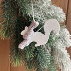 Jemná porcelánová ozdoba ala zimní lesní zvířátko - roztomilá veverka zabalená do hřejivé šály. Dekorace se v zimním čase bude hodit kamkoli vás napadne - do okna, na stromeček, na vánoční dárky. Drobný dárek pro radost, zaručeně vykouzlí úsměv na tváři.