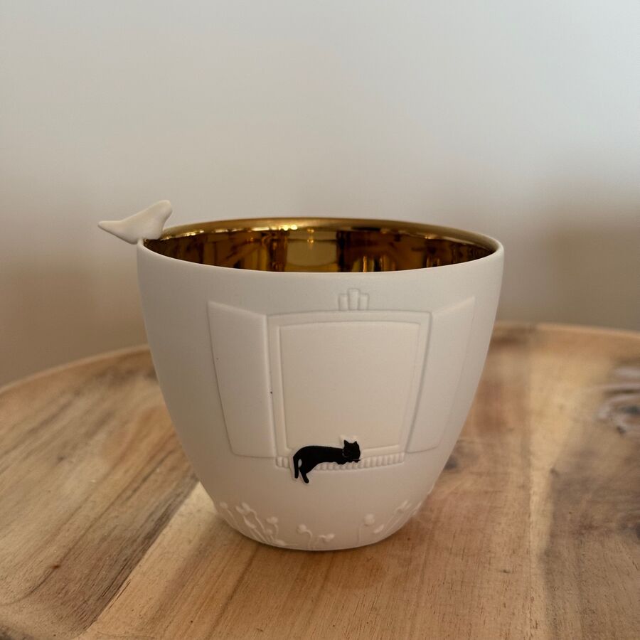 - Svícen Kočičí návštěva, zlatý: průměr: 7,3 cm, výška: 8,2 cm