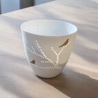 Jemný, děrovaný, porcelánový svícen s motivem větviček a zlatých ptáčků. Zapálit svíčku a schoulit se. Svícny od německého designového výrobce Raeder jsou skutečně výjimečné. Hledáte dárek pro vaše společné chvíle? U tohoto svícnu neváhejte.