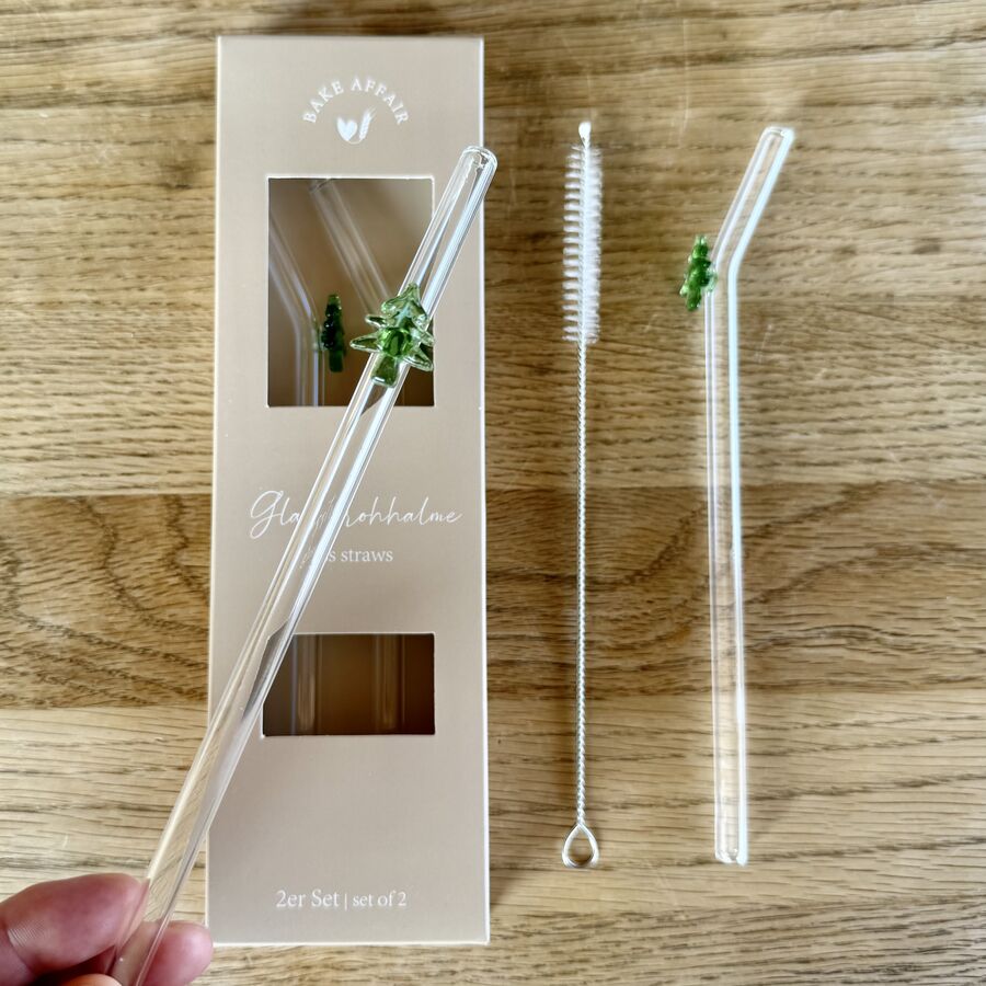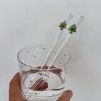 Skleněná brčka/slánky se stromečkem, set 2 kusy