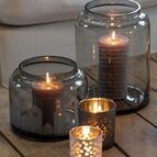 Tato váza z kouřového skla s potiskem domečků sluší každému interiéru. Můžete ji použít také jako svícen a nechat ji zářit!