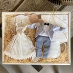 Muž ve fraku. Muž elegán. To i přání musí pasovat! Ušitý oblek na ramínku, uvnitř s kapsičkou na ledasjaká překvapení. Vzkaz, náramek, peníz nebo něco pro štěstí. Přání pro všechny příležitosti, vhodné i jako svatební přání.
