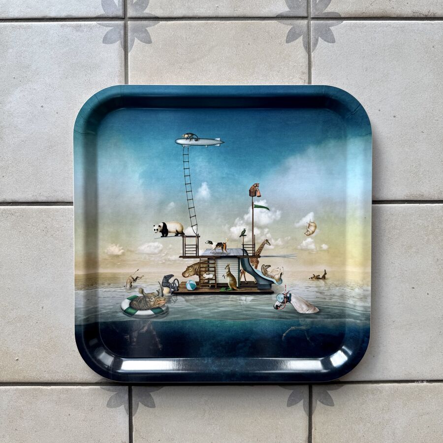 Pohled na tento tác vám možná připomene něco z jiné dimenze, třeba připomínku Noemovy archy nebo jiné fantazie. Designový a plně funkční tác je ručně vyráběný na švédském ostrově Öland s použitím certifikovaného skandinávského březového dřeva. Tento velmi osobitý tác pochází od americké autorky Maggie Taylor. Maggie žije na Floridě, vystudovala filozofii, fotografii a dějiny umění. Autorka využívá různé technolohie snímání obrazu. Její vrstvené obrazy jsou široce vystavovány a jsou umístěny v mnohých významných veřejných sbírkách.