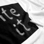 Vezměte kousek křídy a napište svou zprávu na toto tričko. Chcete novou zprávu? Jednoduše hodte tričko do pračky a můžete psát znovu. Napsaný text na černém rámečku trvá, dokud tričko nevyperete.