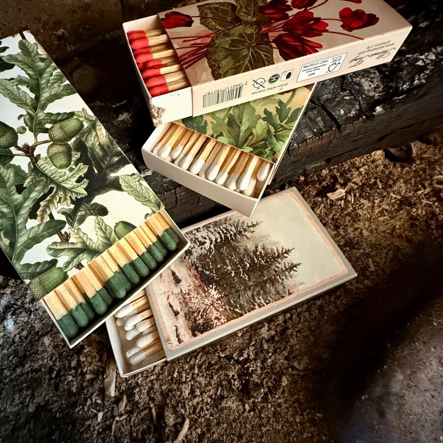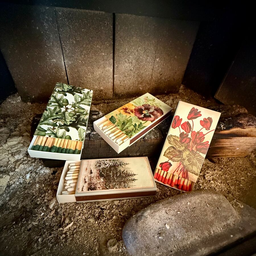 Zápalky, sirky, krabička potištěná ilustracemi ve vintage stylu. Drobnost, co má styl, skvěle se hodí k vonné svíčce, do dárkového balíčku nebo prostě na stůl. I zapalování svíčky je najednou mini rituál.