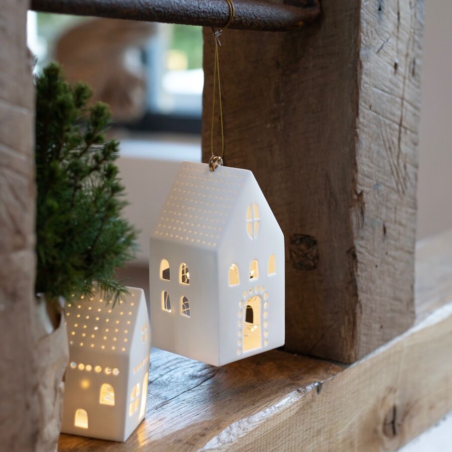 Když se sešeří a v prostoru se rozzáří porcelánový závěsný domeček, můžete začít snít... je okouzlující, ať už s kulatou nebo hranatou základnou, ať malý nebo velký.